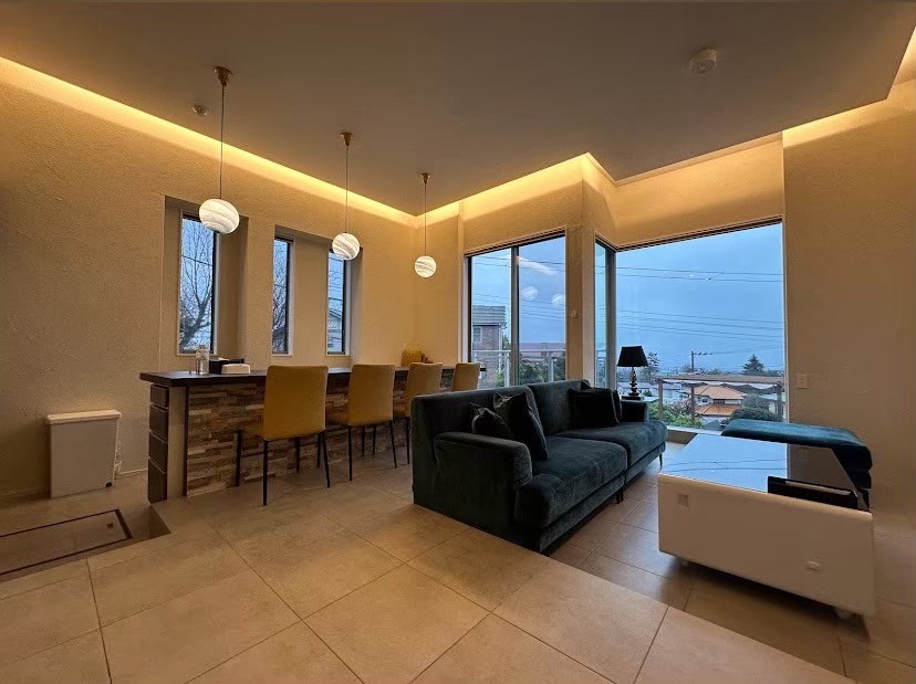 大室山の麓、北には一碧湖、東には断崖が美しい城ヶ崎海岸と海の近くにいながら、森の静けさも楽しめる別荘地内にオープン。